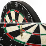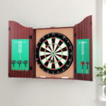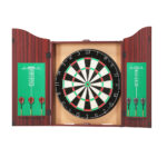 Get competitive at your next party or function with a classic Dartboard Cabinet. The dartboard is made from premium quality sisal fiber panels with a sturdy rotating score ring and features six heavy-duty darts for classic play, all stored in a practical and sophisticated dartboard cabinet. The board has unique features such as a staple-free divider to prevent bounce-out, an extended dart catchment area and protective rubber feet. The sisal fiber panels are self-healing and the scoring ring rotates to extend the life of your dartboard. The darts are made from stainless steel and feature a skid-resistant grain and flexible top, giving you more control over the flight path. The cabinet features a handy scoreboard, integrated dart storage, and a delightfully smooth exterior. The board is not only a fun game but its elegant design will suit any home or business. Easy to assemble with the included wall mount bracket and fixings, youll have plenty of fun with our sporty premium Dartboard.