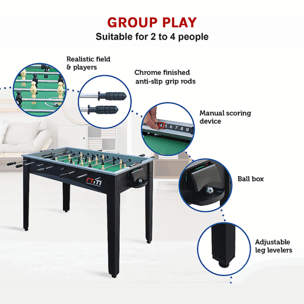 Its small footprint minimises the space it takes up while maximising your fun. Only 43.5 inches long, it can even fit into a child or teen’s bedroom. Beautiful graphics mimic the look of a real football pitch, and anti-slip grips on the rod bars give players perfect control. Manual scorers keep track of each team or player’s score. It’s easy to set up and comes with everything you need to start playing as soon as you set it up. On sunny days, you can even take it outside to catch some rays as you play your favourite table game. This foosball table makes a wonderful holiday or birthday gift for your kids, your partner, or the entire family. Get yours today!