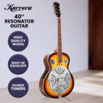 Expand your musical horizons and be mesmerized by the beautiful tone of the Karrera 40-inch Resonator Guitar! Made from high-quality wood and steel, this 6-stringed guitar is incredibly sturdy for everyday practice. Its material and shape produce a loud and crisp tone emanating from its metal plate for a truly distinctive acoustic sound that’s sure to impress.