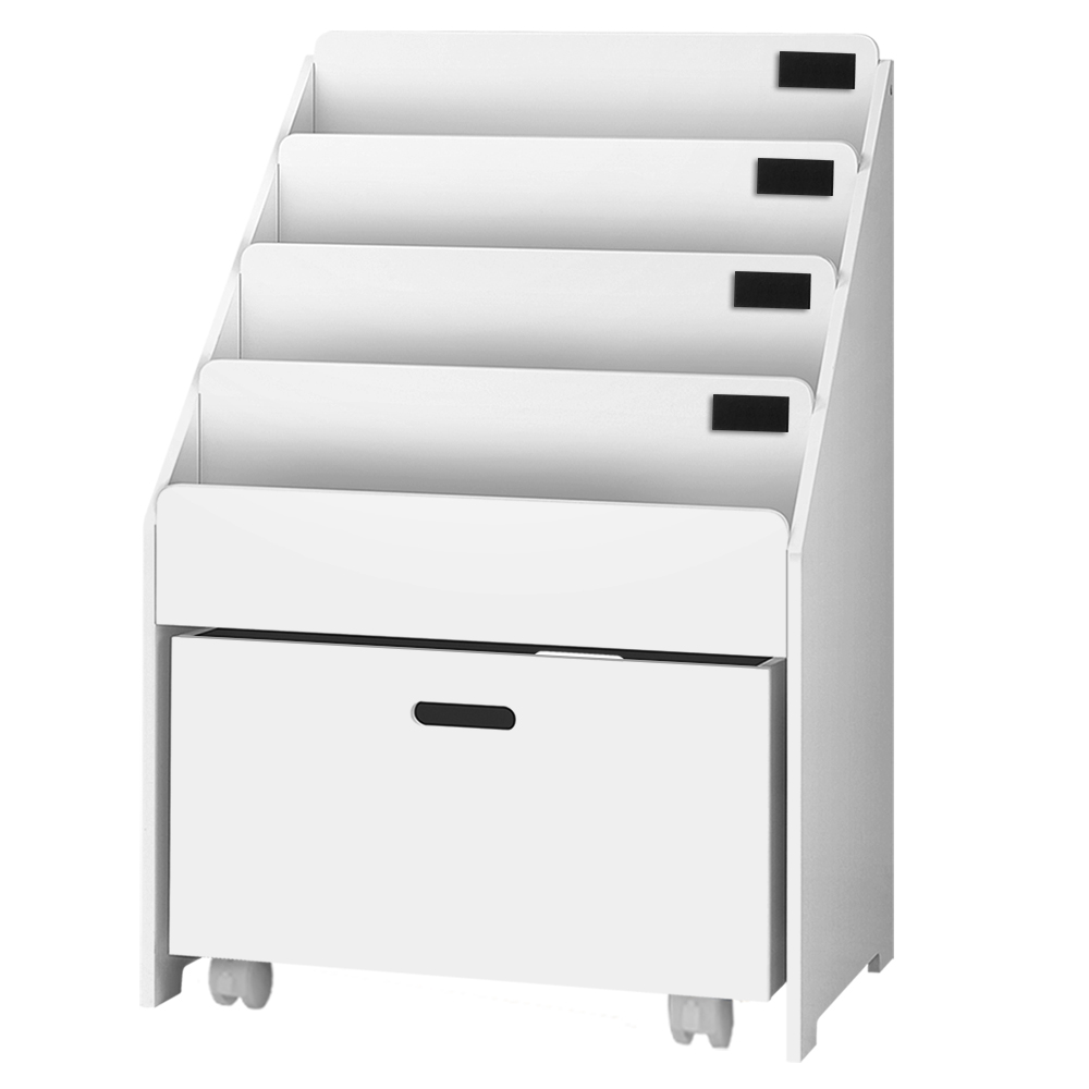 Crafted from eco-friendly particle board, our Kids Bookshelf is designed to be child-safe and yet durable. The Bookshelf features four tiers of shelving with a chalkboard label for each shelf to classify and organize reading materials accordingly. Better still, the Bookshelf also has an integrated removable storage box to store your child’s favourite toys, games and stuff in close proximity.