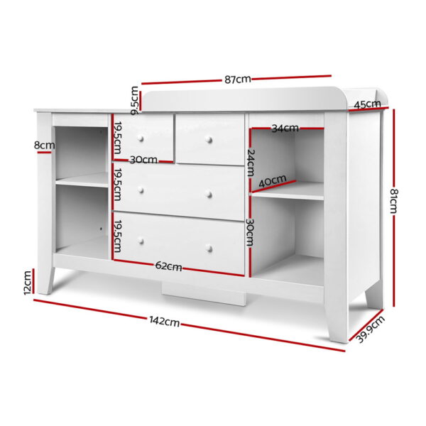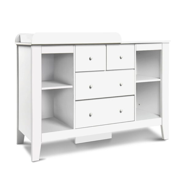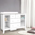 Impeccably designed, our practical Keezi Baby Change Table is the perfect storage solution for your little one. The baby change table makes changing your baby’s diapers and clothing a breeze. It also features four spacious drawers and four open shelves to offer ample storage space for all your baby supplies, including diapers, clothes, accessories, toys and more. The top change platform can be easily removed for extra table space, so that you can use the baby change table as a normal storage chest in the children’s room or even the master bedroom. Most importantly, it is finely finished with certified non-toxic paint that is completely safe for you and your baby.