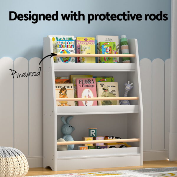 This 3-tier storage solution is perfect for keeping your little one’s books and toys organized. Suitable for children aged three years and above, this versatile storage solution is ideal for playrooms, living rooms, and even kindergartens. Protective rods keep your books and toys firmly in place, preventing accidental falls and messes. With super smooth edges, you can rest assured that it’s safe for your child to use. Cleaning and maintaining it is a breeze, making it a convenient choice for busy parents. Not only is this bookshelf easy to assemble, but it also comes with an optional wall attachment for added stability. Keep your child’s belongings tidy and within reach with the Keezi Kids Bookshelf.