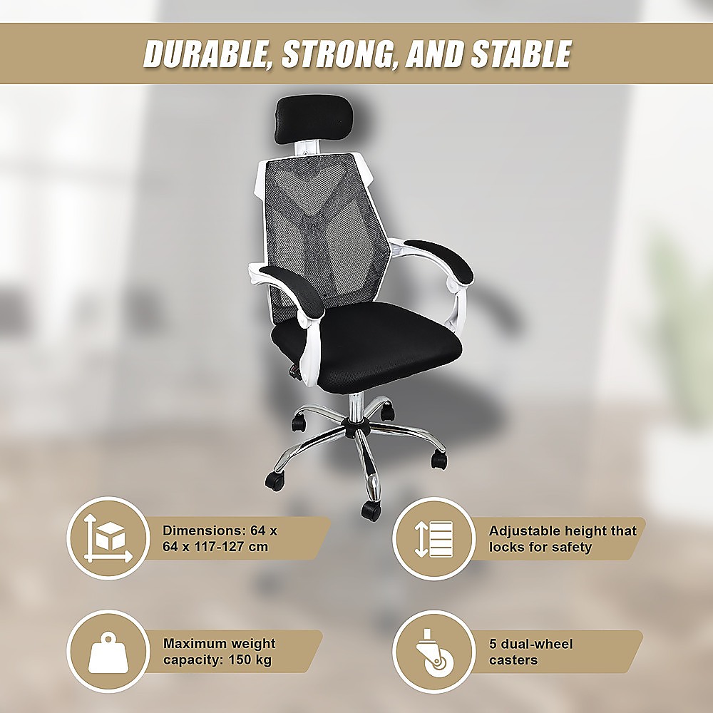 Whether working from home or office, comfort is a must. With this ergonomically designed office chair from Randy Travis Machinery, you're in for a treat no matter how long your workdays. Covered in breathable, super-soft mesh, you'll stay cool and comfortable even on the hottest days. No wire mesh marks on your skin just incredible comfort. With its full-length backrest, ergonomically curved lumbar support, and contoured neck support and headrest, you can sit for hours without any discomfort from pressure points. It swivels a full 360 degrees, so you can turn to reach whatever you need.