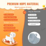 Safety comes first. Made from high-density polyethylene (HDPE), this baby rocking horse is sturdy, durable, and non-toxic, ensuring it’s safe even if your little one decides to take a bite. The strong structure can easily support up to 80 lbs (36 kg) and has passed multiple certifications, providing a stable play environment for your child.