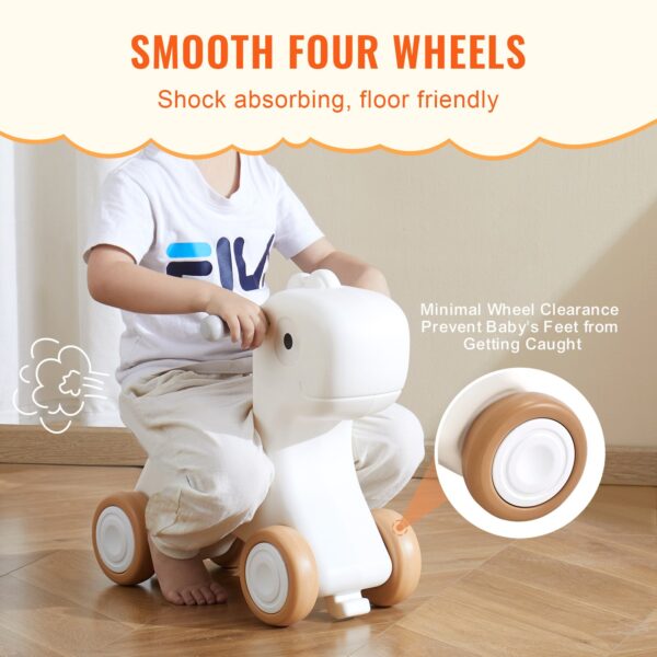We care about every touch experience for your child. Four durable wheels of the toddler rocking horse ensure smooth and quiet movement, adapting to both indoor and outdoor play. The safety gap design of the wheels prevents little hands and feet from getting pinched, showing our deep care for your child’s development in every detail.